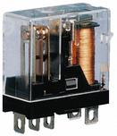 A Relay is an electromagnetic switch used to interface between circuits with different voltages. When the coil of wire inside the case becomes engergised a magnetic field is created pulling the switch contacts on the other side together, completing the circuit. Importantly, there is no electrical connection between the circuits. Solid State relays also exist to remove the issue of mechanical fatigue that can occur with traditional relays. They use an opto-isolater, which is an infrared LED and photo transistor that switch using light, so require no moving parts.