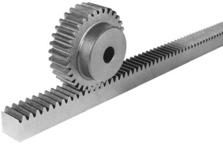 Rack and Pinion gears consist of a toothed rod (rack) and a single slot gear (pinion). The rotary torque of the driven slot gear transfers to linear motion as the toothed rack is moved along the gear profile. Such a mechanism is responsible for transferring the rotary motion of a steering wheel to move the wheels of a car